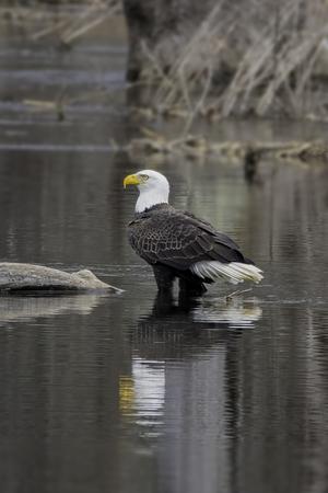 Bald eagle standing in Watauga River in Carter County, TN