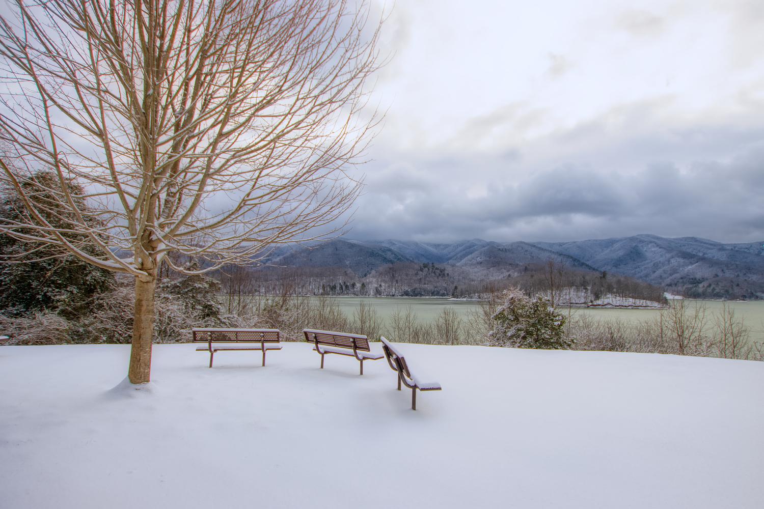 Snow covered Watauga Lake Overlook