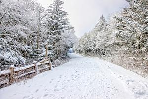 Roan Mountain State Park in the Snow, road from Carver's Gap to the Rhododendron Garden.